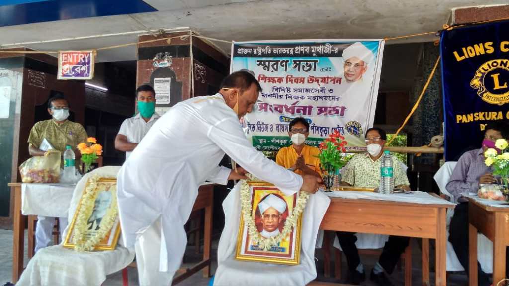 আজ ৫ ই সেপ্টেম্বর , বিকেল তিনটায় পাঁশকুড়া ষ্টেশন নিকটস্থ ময়দানে প্রাক্তন রাষ্ট্রপতি ভারতরত্ন প্রনব মুখার্জীর স্মরনসভা এবং শিক্ষক দিবস উপলক্ষে বিশিষ্ট সমাজসেবী ও শিক্ষকদের সংবর্ধনা অনুষ্টিত হল । টুডে নিউজ এর তরফ থেকে ও লায়ন্স ক্লাবের সহযোগিতায় শংসাপত্র ও স্মারক প্রদান করা হয়। উপস্থিত ছিলেন লায়ন্স ক্লাবের জোন চেয়ারম্যান বিশিষ্ট সমাজসেবী এবং পাঁশকুড়া পৌরসভার প্রাক্তন পৌরপিতা কল্যাণ রায় । তিনি ডঃ সর্বপল্লী রাধাকৃষ্ণানের প্রতিকৃতিতে মাল্যদান করেন ।