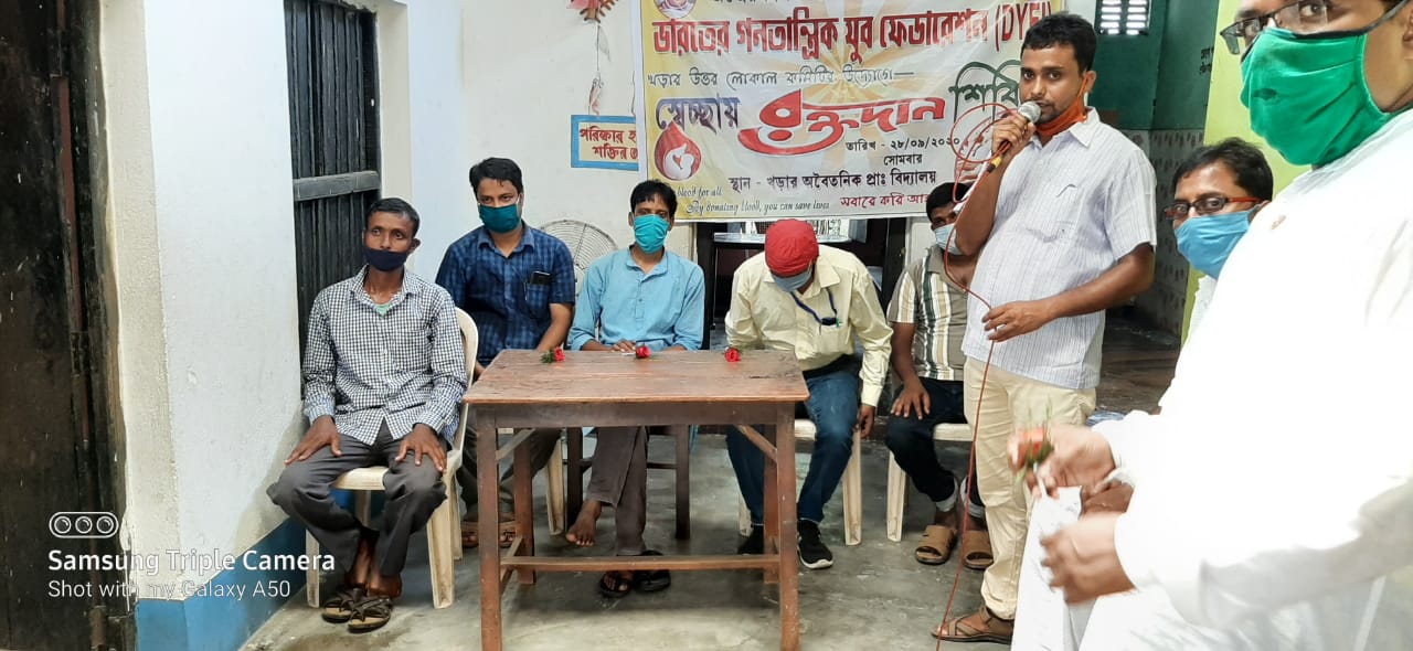 ঘাটাল উত্তর এরিয়া কমিটির উদ্যোগে খড়ার শহরে রক্তদান শিবিরের আয়োজন করা হয়েছে। সংগঠনের পতাকা উত্তোলন করেন ডি ওয়াই এফ আই এর পশ্চিম মেদিনীপুর জেলা কমিটির সভাপতি কমরেড রঞ্জিত পাল। বিদ্যাসাগর এবং ভগৎ সিং এর প্রতিকৃতিতে মাল্যদান করেন রঞ্জিত পাল, গণআন্দোলনের নেতা অশোক সাঁতরাসহ অন্যান্যরা ।