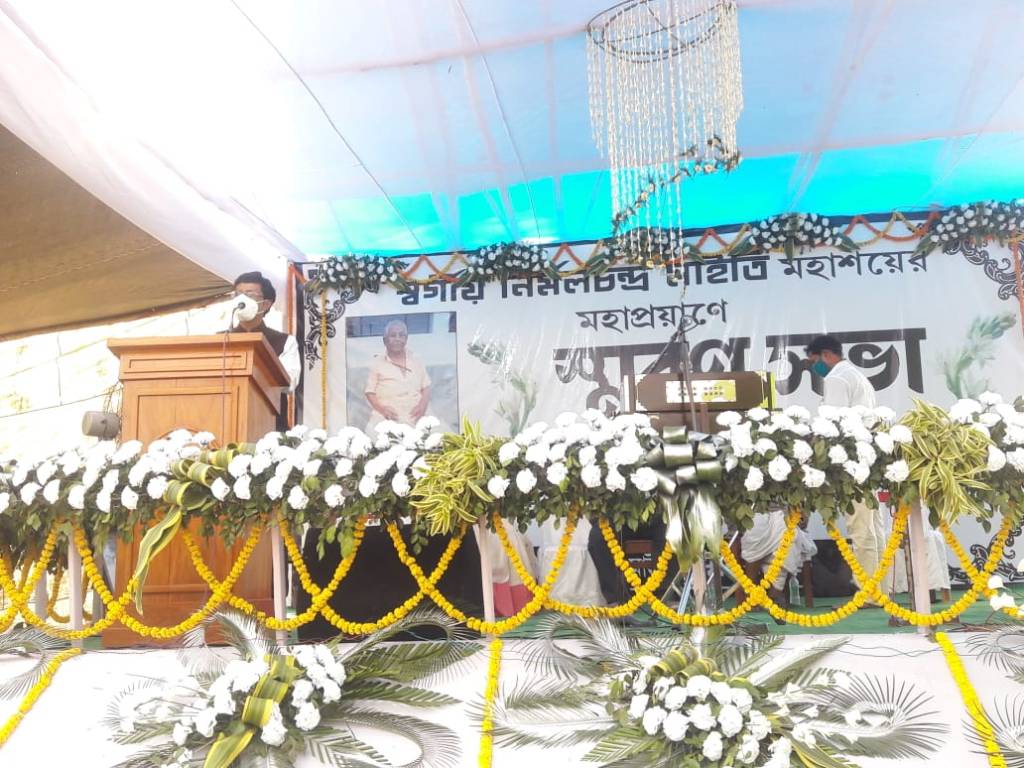 পাঁশকুড়া , পূর্ব মেদিনীপুর – গতকাল শুক্রবার শ্যামসুন্দরপুর পাটনা সিদ্ধিনাথ মহাবিদ্যালয়ের উদ্যোগে মহাবিদ্যালয়ের মাঠে মহাবিদ্যালয়ের প্রতিষ্ঠাতা ও সভাপতি এবং প্রাক্তন জাতীয় শিক্ষক নির্মল চন্দ্র মাইতির স্মরণসভা অনুষ্ঠিত হল । প্রায় সারাদিন ধরেই স্মরণসভা অনুষ্ঠিত হয় । স্মরণসভার আহ্বায়ক ছিলেন মহাবিদ্যালয়ের পরিচালন কমিটির সদস্য অধ্যাপক ডক্টর গোবিন্দপ্রসাদ কর এবং কলেজের অধ্যক্ষা ডক্টর উমা ঘোষ । স্মরণসভায় বক্তব্য রাখেন পশ্চিমবঙ্গ সরকারের মন্ত্রী ডক্টর সৌমেন মহাপাত্র ,পাঁশকুড়া পশ্চিমের বিধায়িকা ফিরোজা বিবি , পাঁশকুড়া পৌরসভার চেয়ারম্যান নন্দকুমার মিশ্র , প্রাক্তন বিধায়ক চিত্তরঞ্জন দাসঠাকুর , জেলা পরিষদের প্রাক্তন সভাধিপতি নিরঞ্জন সিহি , কলকাতা দূরদর্শনের প্রাক্তন অধিকর্তা বনবিহারী পাহাড়ী , শিক্ষারত্ন শিক্ষক মানস কুমার দাস, সাহিত্যিক সুকেশ কুমার মন্ডলসহ অন্যান্যরা । পরিবারের পক্ষ থেকে উপস্থিত ছিলেন ওনার বড় ছেলে অমিতাভ মাইতি । অনুষ্ঠানটির সঞ্চালনা করেন প্রাক্তন সহ প্রধান শিক্ষক পুলিনবিহারী শাসমল ও শিক্ষক নিতাই চাঁদ মান্না । সভায় সভাপতিত্ব করেন কলেজ পরিচালন সমিতির সহ সভাপতি ও প্রাক্তন প্রধান শিক্ষক ননীগোপাল আদক।বর্তমান পরিস্থিতিতে অনুষ্ঠানটি সামাজিক দূরত্ব মেনে এবং স্যানিটাইজার টানেলের মাধ্যমে প্রত্যেককে স্যানিটাইজড করে অনুষ্ঠিত হয় । সুশৃংখল ও শোকাচ্ছন্ন পরিবেশে অরাজনৈতিক স্মরণসভাটি অনুষ্ঠিত হয় । আগামী বছর মে মাসে কলেজের প্রতিষ্ঠা দিবসে প্রয়াত জাতীয় শিক্ষক নির্মল চন্দ্র মাইতির একটি আবক্ষ মূর্তি উন্মোচিত হবে ।